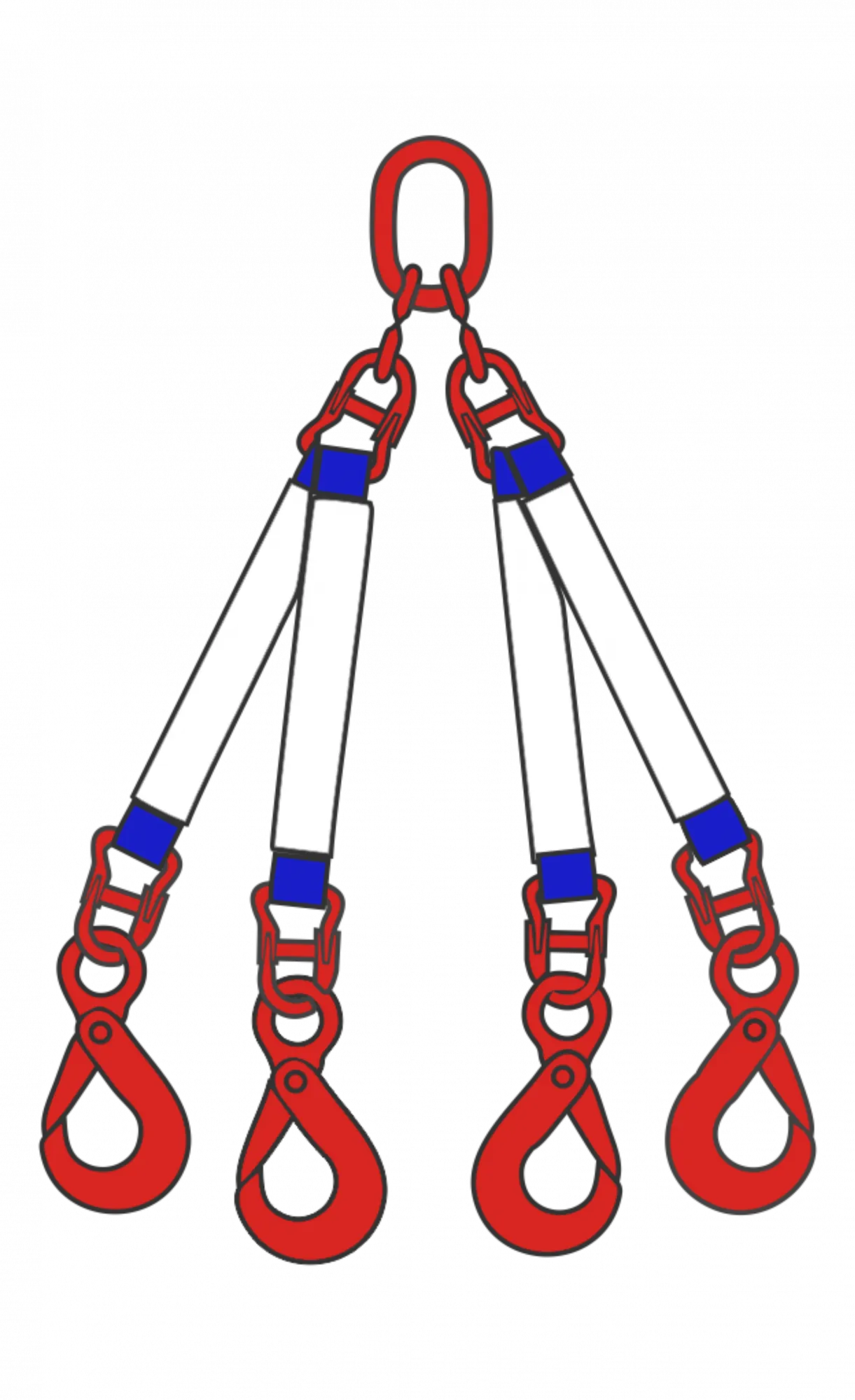 Такое устройство представляет собой четыре несущие ветви (по сути ленточные одноветвевые стропы 1СТ), которые соединены между собой специальным подвесным округлым кольцом. Петлевые концы каждой ветви оборудованы грузозахватными наконечниками (концевыми деталями) — это могут быть скобы, захваты, а чаще всего грузовые крюки с задвижкой или самозакрывающимся устройством. Требования по изготовлению и применению текстильных четырехветвевых строп определены распоряжениями Госгортехнадзора в РД-24-СЗК-01-01, ТУ 5225-010-91978384-2011 и другими документами. Плоские ленты строп выпускаются из высококачественного полиэстерового материала и способны переносить высокую нагрузку с коэффициентом запаса прочности 7:1.