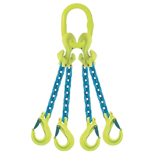 Строп цепной четырехветвевой 4СЦ производства Gunnebo грузоподъемность 3,1 т, длина 0,5 м, изготовленный из цепи диаметром 6 мм — это грузоподъемное цепное приспособление, закрепление которого выполняется за четыре опорные точки. Такой строп делается из овального несущего звена с подзвенниками, к которому с помощью разборных соединительных звеньев крепятся круглозвенные цепные ветви, на свободных концах которых устанавливаются чалочные крюки с защелками.