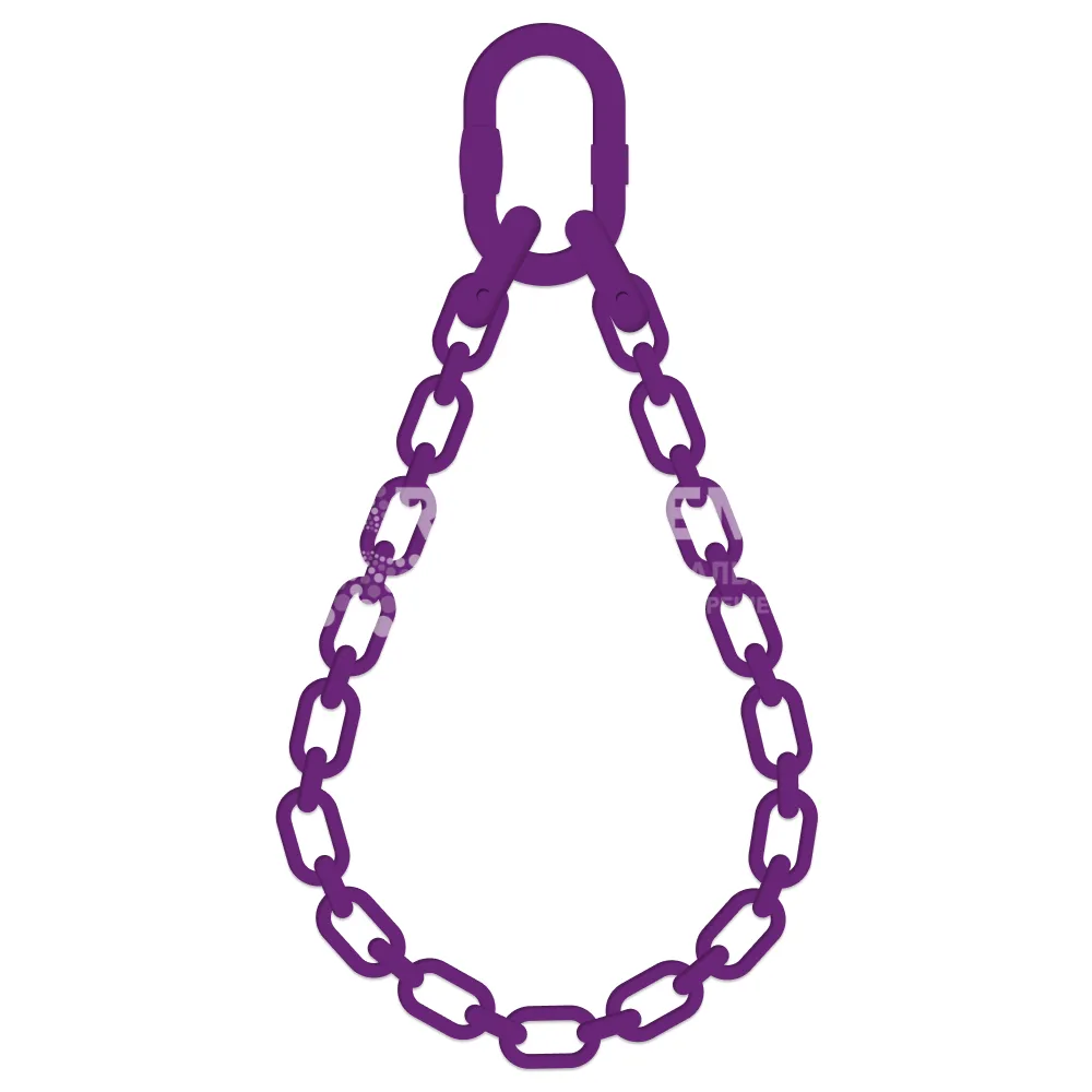 Строп 1СЦвз собирается из куска круглозвенной цепи, которая образует петлю, и двух соединительных звеньев типа «бабочка», с помощью которых цепь закреплена на овальном концевом кольце.